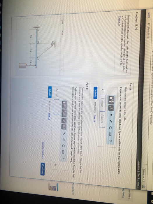 The 23-in. vertical rod CD is welded to the midpoint C of the 50-in. rod AB. Determine the moment about AB of the 235-lb force P. 3.69 The frame ACD is hinged at A and D and is supported by a cable that passes through a ring at B and is attached to hooks at G ... Retrieve Content