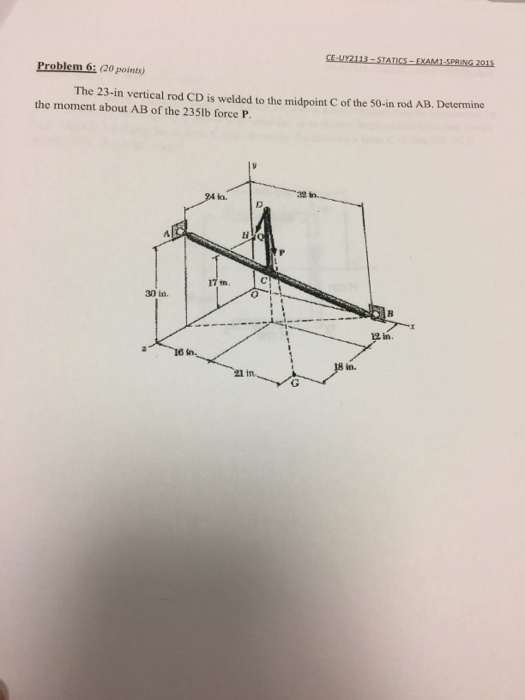 ENGR 2301 Homework 4 Solutions . 360 mm 500 m m SOLUTION First note: and By definition, The 23-in. vertical rod CD is welded to the midpoint C of the 50-in. rod AB. Determine the moment about AB of the 235-1b force P. — (32 in.)i — (30 in.)j (24 in.)k ... Retrieve Here